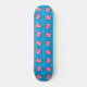 Um skate que caracteriza um teste padrão de repetição adorável de um porco do rosa do vôo em um fundo azul vívido.