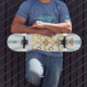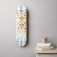 Vire as cabeças no skate com este na moda Dourado Piso Barroco de skate. Apresentando um design de rolagem de vintage ornamentado em tons ricos de ouro sobre raios azuis claros radiantes, este conselho combina elegância clássica com estilo de rua ousado. Perfeito para skatistas que querem um baralho artístico único que se destaca. Ideal como presente ou colecionável para amantes de arte e design.