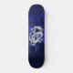 Um applique do dragão no cromo como o estilo de prata em um impressão flamejante azul do fundo da fibra do carbono a vestir-se ou compartilhar em todas as ocasiões festivas.
