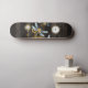 Marcadores e teclas antigas com engrenagens de ouro e latão, decoradas com libélulas mecânicas e boias em fundo castanho e listrado.
