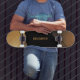 Este deck moderno apresenta um design ousado preto e dourado inspirado no cosmos e na galáxia. Serve como uma tela personalizada onde você pode facilmente atualizar o nome, as cores e a fonte para refletir sua identidade única. Uma escolha impressionante para sua próxima sessão de skate ou como uma peça decorativa para o seu quarto. Crie seu próprio visual personalizado hoje para combinar com outros itens da nossa coleção. ©Susanne Sachers - Sunny Wanderlust 🌞✈️