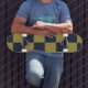 Skate Elegante padrão xadrez dourado e azul-marinho