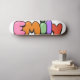 Emily divertida e colorida no texto do estilo bublegum.