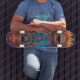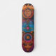Esta design de skate tem uma ilustração colorida de uma entidade mística e símbolos cósmicos.