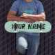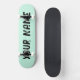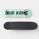 Deck de skateboard com um design estético em verde pastel e espaço para nome personalizável. Perfeito para skate de rua, truques ou como um presente personalizado estiloso e divertido para entusiastas de skate.