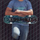 Skate Estilo mosaico azul néon sobre vidro martelado ásp
