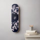 Um ramo de flor de cerejeira rosa desbotado em um fundo azul do céu noturno estrelado. Personalize este skate elegante da galáxia floral com seu monograma: