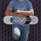 Skate que descreve a geometria sagrado acompanhada dos grafites da última página de "meu primeiro livro para colorir dos grafites."