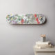A colagem lindo de belas artes botânicas do vintage de pássaros do colibri com lírio, corriola, íris e outras flores em um jardim, em um fundo do bordado do vintage, está neste skate. A imagem é dominio público devido aos direitos reservados expirados. A colagem é por mim.