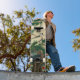 A pintura japonesa da arte da tela da multa lindo do vintage das rosas vermelhas e uma árvore chinesa e flores das glicínias, com um pássaro de cauda longa, e água, está neste skate. A imagem é dominio público devido aos direitos reservados expirados.