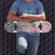 Skate Flores-rosa-impressas, pretas, Douradas prateadas,
