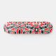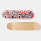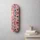 Um skate com um design abstrato incomum feito de estranhas formas surreais em vermelho e preto. Inspirado pela design moderna retrógrada.