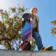 Um design abstrato, ousado e vibrante, que apresenta placas coloridas de tinta contra um fundo preto profundo. Perfeito para amantes de arte modernos, roupa de tendências e acessórios de na moda.