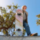 Fundo de textura rosa e azul, pintado com grandes pinceladas, decorado com folha de ouro. Textura Grunge.