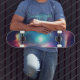 Deck de skateboard com um design moderno de céu de galáxia cósmica celestial. Perfeito para skate de rua, truques ou colecionadores que amam decks de skate inspirados no espaço e artísticos.