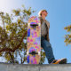 Quadro de skate de arte abstrato, roxo e cor-de-rosa, colorido, com nome personalizado em um roteiro de tipografia branca, com letra casual.