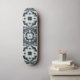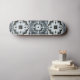 Um intrincado padrão preto, cinza e azul geométrico decora este conselho legal.