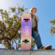 O arco-íris moderno brilha o nome cintilante feminino skate
