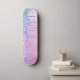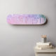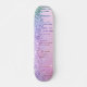 skate feminino com cores unicórnicas arco-íris de falso brilho pingando contra um fundo rosa.
