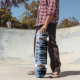 skate feminino personalizado com brilho azul esmaecido pingando contra fundo preto. Você pode adicionar seu primeiro nome em letras em negrito através da lente.