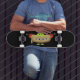 Cachorro Quente o homem é feito com um esfregão frito profundo em um pão fresco quente, com uma cabeça e calçados verdes e apimentados. Ele é destemido e confiante e mostra com seu sorriso "IMA HOT DOG".