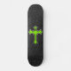 Verde de néon brilhante com cruz metálica no couro preto do vintage. IMAGEM IMPRESSA.