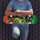 Skate Jesus; Verde vibrante, laranja e amarelo