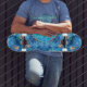 trabalho de arte de aquarela de um lago de peixe com gotas de chuva caindo na água de um skate