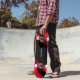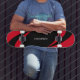 Linhas onduladas pretas e vermelhas com centro preto e skateboard de caligrafia.