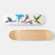 Muitos tipos do macaw em um skate do jacinto e escarlate ao híbrido, azul e ouro e macaws militares pelo estúdio de ronrom de dois gatos. Um grande presente para miúdos ou o miúdo em você.