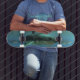 Três grandes tubarões brancos prowl as profundidades do oceano nesta plataforma temático submarina do skate.