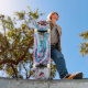 Skate misto de gradiente e chuviscado, ciano e rosa