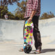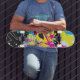 Imagem com estilo retro 80s com formas simples com cores em negrito em skate boards.