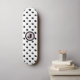Este skate divertido apresenta um padrão de pontos pretos em um fundo branco com um monograma personalizado enquadrado em um fundo rosa pálido. Clique em Personalizar este Modelo para personalizar facilmente o monograma e personalizar ainda mais a fonte e as cores.