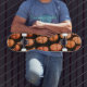 Uma pop arte inspirou a composição com múltiplas imagens em colisão da Mona Lisa digitalmente gravadas com um tom laranja.