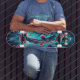 "Surf as ondas de concreto com o 'Neon Flux: Cyber Koi Skateboard Deck', uma fusão do simbolismo tradicional e da inovação do cyberpunk. Este convés apresenta um peixe koi aumentado mecanicamente, que atravessa as correntes de ar de uma paisagem urbana neonatal. As suas escalas metálicas estão entrelaçadas com linhas de neon pulsantes em azul elétrico e rosa, refletindo o legendário estatuto do koi como um prendedor de prosperidade e fortuna. Acima, veículos voadores atravessam a linha do horizonte pontilhada com anúncios holográficos. A design do pavimento futurista, elegante, com ângulos agudos e efeitos holográficos, encapsula o espírito vibrante de uma metrópole de alta tecnologia. A 2700 x 9900 pixels, cada detalhe é projetado para impacto visual e desempenho."