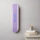 Grande nome de script azul, ou monograma, em faixas de lavanda com fundo branco. Clique em "Editar usando a ferramenta Design" para alterar cores e digitar estilos.