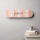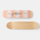skate feminino com um design de padrões de riscas cor-de-rosa pincelado e um script com letra de mão. Personalize com seu nome.