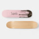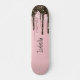 Blush Pink Glitter Girly Sparkles Nome Personalizado Skateboard. Skate de garotas brilhantes também! O conselho rosa embebido com brilho simulado rosa, branco e preto goteja de skate feminino. O nome do skater na moderna tipografia manuscrita na engrenagem de skate rosa-reluzente personalizada dessa garota ao ar livre. Não se esqueça de completar seu presente adicionando o pacote Trucks, Rodas e Fitas de Suporte ao seu carrinho! Série Inspiração Passo a Passo disponível exclusivamente no Zazzle em zazzle.com/store/KrisHarty, projetada pelo designer internacional Kris Harty. © 2022 Kris Harty Passo a Passo Designs Inspiracionais