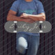 Este skate personalizado apresenta seu nome em lindas letras escritas à mão em um fundo de cinza de carvão. ideia de presente de excelente.