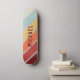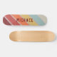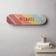 Nome personalizado Legal Retro Sunset Stripes O skate apresenta o seu nome personalizado em uma faixa de luz retrógrada, laranja, amarela e azul sobre fundo de madeira. Personalize editando o texto na caixa de texto fornecida. Dê um presente personalizado, skate personalizado para seu skate favorito no Natal, aniversário ou BFF. Desenvolvido por ©Evco Studio www.zazzle.com/store/evcostudio