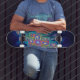 Uma imagem fractal multicolorida (rosa, verde, azul, amarela), que abre espaço sobre um fundo azul escuro. Uma interpretação de como o céu noturno pode parecer a um xamã siberiano enquanto em transe se comunicando com os espíritos. Adicione seu próprio texto.