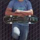 Abstrato Grunge Gráfico Wave art em várias cores posicionadas horizontalmente em um padrão imprevisível. Azul escuro com áreas brancas brilhantes mostrando através da peça dando um contraste justificado pelo artista Jason Girard.