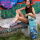 Skate Ouro de Fundo do Padrão Azul Céu em Escala de Peix