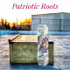 Fogos de artifício a rebentar em explosões explosivas, destacando este símbolo, de uma haste, bandeira americana, a exibir, pulverizações coloridas de; vermelho, branco, azul, cinza, prata, amarelo, verde e roxo contra um crepúsculo, céu.