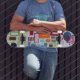 Skate Partido de Disco Retroativo na Colagem de Cores