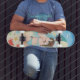 Personagem de desenho animado de anime na praia - Design de skate bonito.