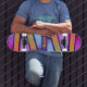 Skate Placa gráfica laranja, rosa, roxa e azul