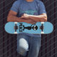 Quadros de skate de alienígena. Fundo azul claro. Faz um presente "fora deste mundo"!