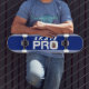 Tabuleiro legal de borda dupla faixa azul e branca com fotografia pessoal e texto branco "skate pro". Personalize-o adicionando uma fotografia. Design de unisex para homens e mulheres. Excelente para qualquer skater.